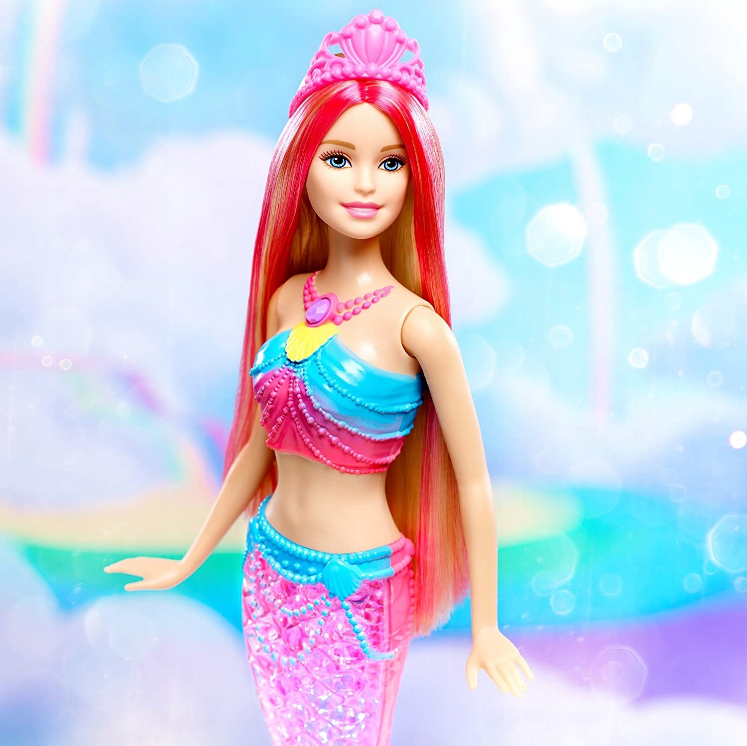 Dreamtopia to bajeczny świat ze snów Chelsea, jednej z młodszych sióstr Barbie. Składa się z czterech krain: Długowłosych, Słodkości, Tęczy i Klejnotów. W każdej z nich spotykamy niezwykłych bohaterów, takich jak: jednorożce, wróżki, księżniczki i syrenki. To właśnie z Dreamtopii pochodzi nasza syrenka, która zamieszkuje tęczowe rzeki tej baśniowej krainy.