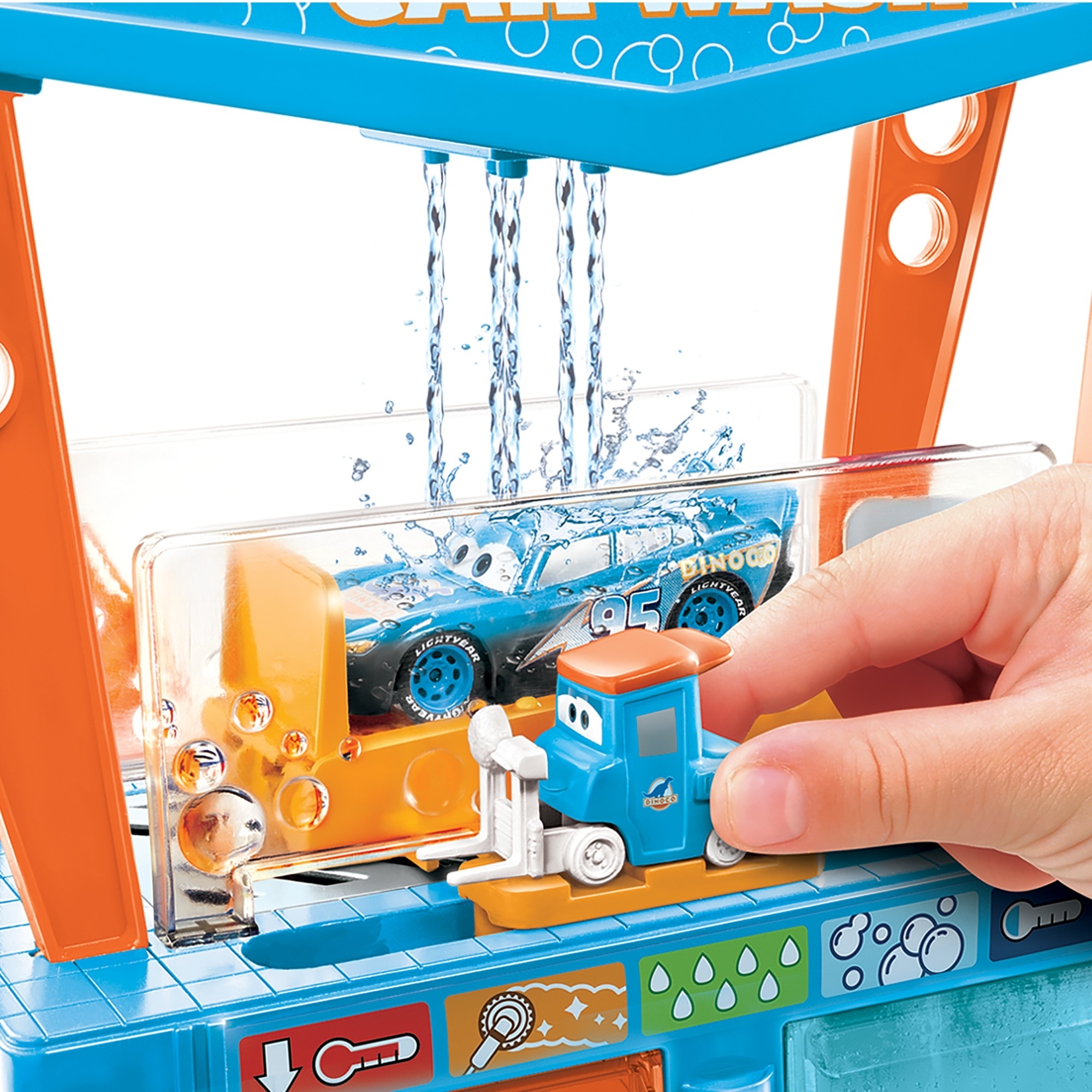 Po rajdowych wyzwaniach Zygzak McQueenem rusza do myjni samochodowej, aby się zrelaksować. Możesz tutaj także zatankować auto. Zaczekaj aż zapali się zielone światło i możesz ruszać pod prysznic. W myjni znajdują się dwa zbiorniki, do jednego wlej wodę gorącą, a do drugiego lodowatą i zobacz jak Zygzak McQueen pod wpływem temperatury zmienia kolor. Gdy Zygzak będzie już czysty, pomknij ku szczotkom, aby go osuszyć i ruszaj dalej na rajdowe wyzwania! Myjnię pomoże Ci obsłużyć kochany Guido.
