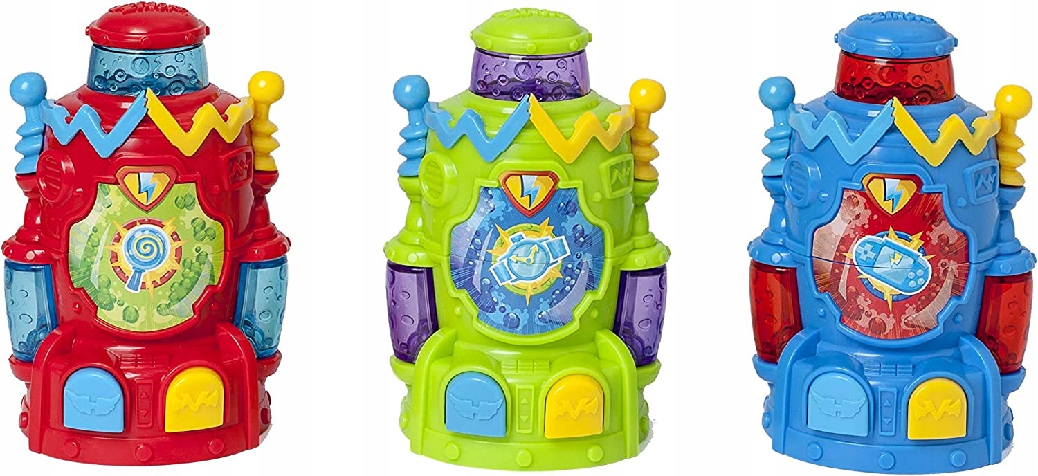 - Maszyn Kazoom z ekskluzywnymi figurkami. Teraz masz taką samą moc jak Profesor K i Enigma dzięki Kazoom: możesz przekształcać obiekty i zamieniać je w bohaterów lub złoczyńców!