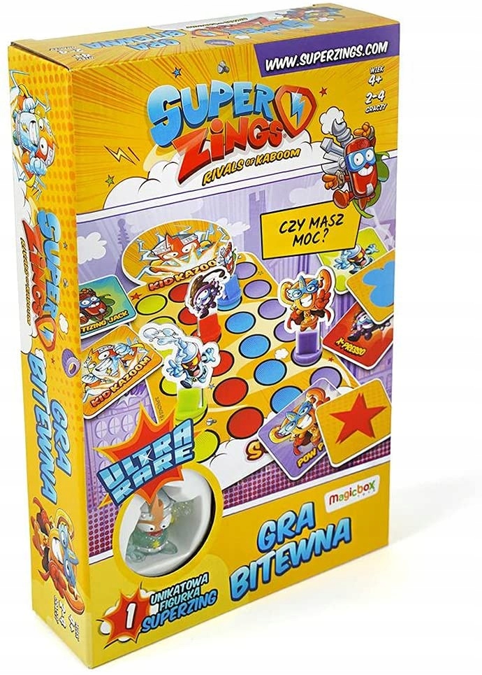 Opakowanie zawiera planszę do gry, karty mocy oraz kolorowe pionki z bohaterami, a także unikatową figurkę Super Zings. Gra dedykowana jest dla dzieci powyżej 4 roku życia. W rozgrywce może wziąć udział od 2 do 4 osób.