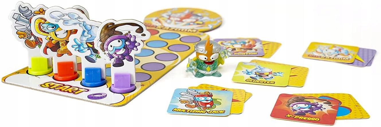 Czy twój bohater ma w sobie odpowiednią ilość mocy, aby pokonać Kid Kazooma? Rozłóż karty mocy na planszy i wybierz jedną z nich. Odłóż ją odwróconą obrazkiem do dołu i wylosuj kartę mocy dla Kid Kazooma. Niech rozpocznie się bitwa! Odwróć karty i sprawdź czy udało ci się pokonać przeciwnika – jeżeli tak przesuń się o jedno pole na planszy. Gracz który jako pierwszy dotrze do Kid Kazooma wygrywa!