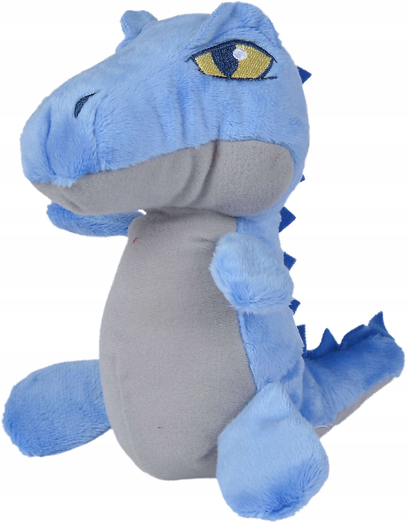 Maskotka przedstawia małego niebieskiego dinozaura. Wykonana została z miękkiego w dotyku pluszu, a oczy i elementy twarzy zostały wyhaftowane.
