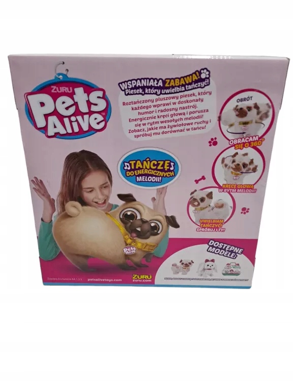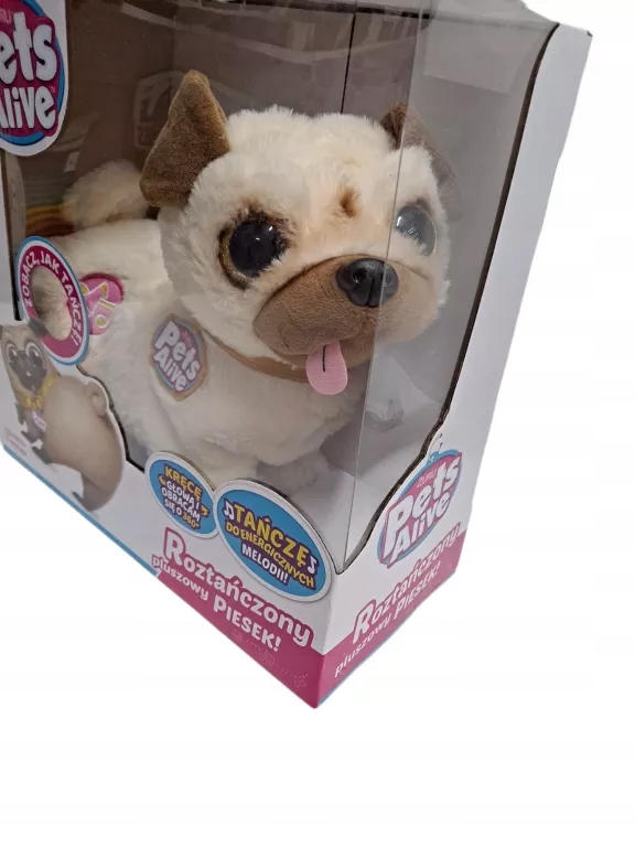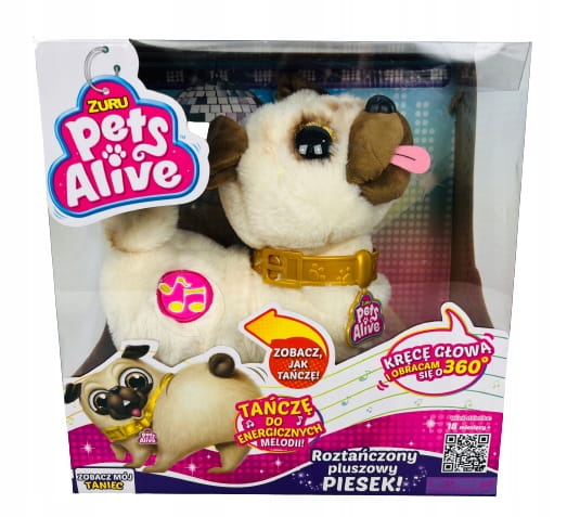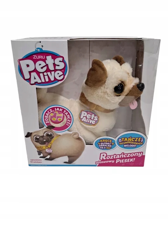Pets Alive Interaktywny tańczący PIESEK Zuru. Interaktywny, wesoły piesek zaprasza cię do wspólnej zabawy. Potrząśnij nim, a prawdziwa impreza dopiero się zacznie! Piesek tańczy i porusza się w rytm trzech piosenek. Potrafi też skakać i energicznie potrząsać ciałem. Zabawka jest idealnym prezentem na każdą okazję.