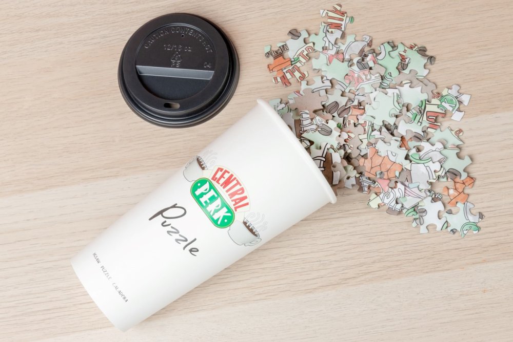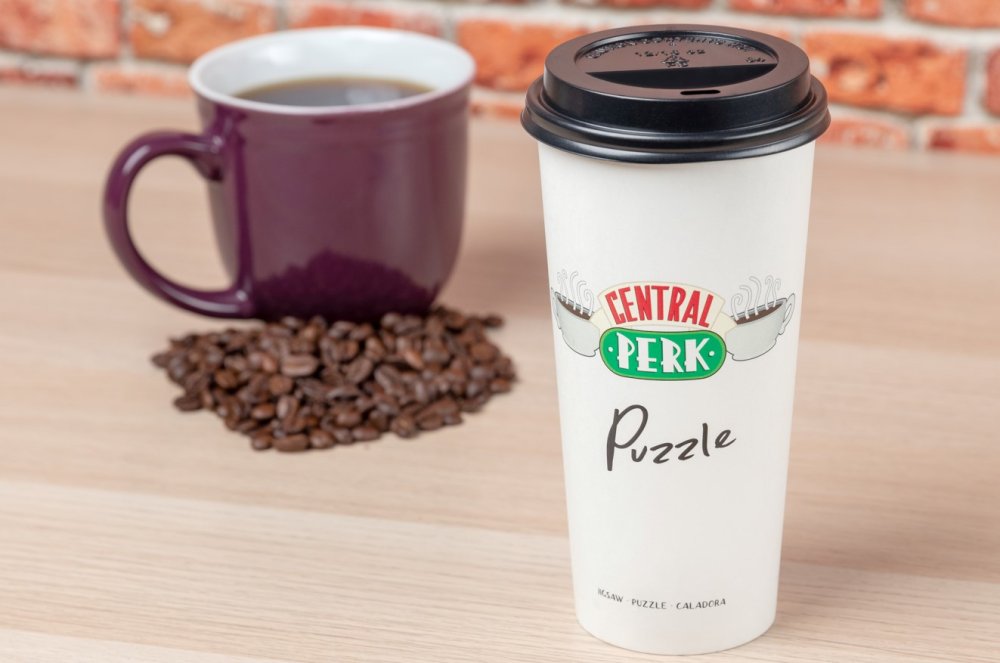 Wewnątrz tego pudełka, stylizowanego na papierowy kubek do kawy Central Perk, znajdziesz ukrytą 400-częściową układankę odnoszącą się do kawiarni Central Perk z serialu Friends.