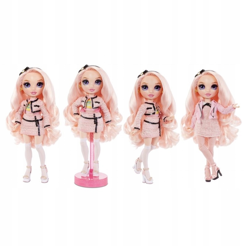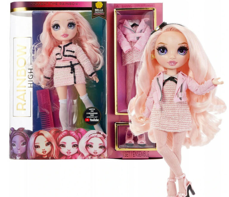 Śliczna Bella Parker to ikona stylu i różowa księżniczka. W tweedowym komplecie oszałamia całe liceum Rainbow High. Każdy szczegół jej outfitu jest dopracowany i dopasowany do całości. Lalka ma piękne rysy twarzy, zachwycające oczy i fantastyczne długie włosy, które dziewczynki mogą czesać i stylizować. (Przed pierwszym czesaniem należy umyć lalce włosy). Każdy zestaw z serii 2 zawiera jedną lalkę Rainbow High, dwa pełne komplety ubranek do miksowania i tworzenia własnych zestawień oraz akcesoria. Dzięki stojakowi i różnym punktom artykulacji – lalkę można ustawiać w wielu dowolnych pozach.