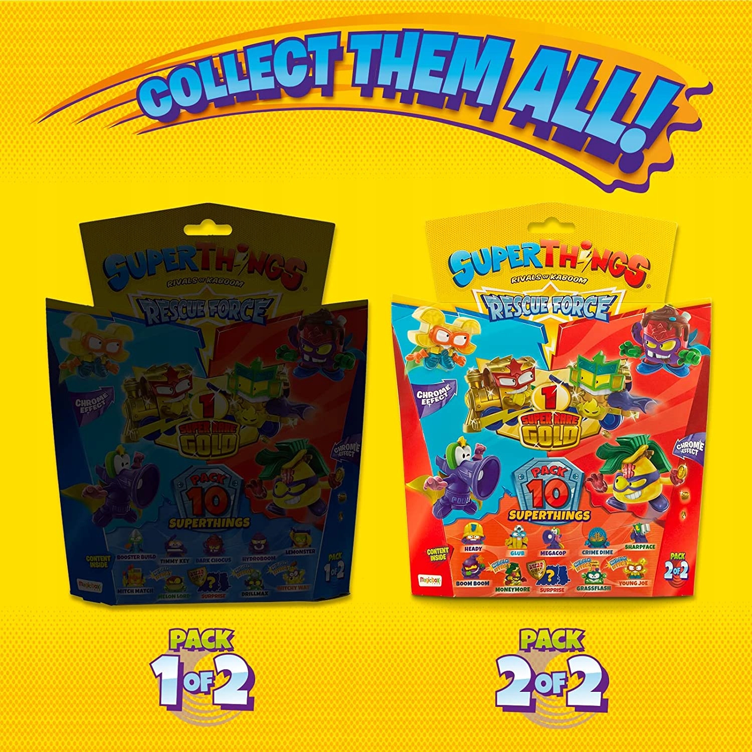 Czy chcesz szybko powiększyć swoją kolekcję SuperThings Rescue Force? W tym opakowaniu znajduje się aż 10 różnych figurek, a jedna z nich jest w kolorze złotym (Bohater lub Złoczyńca)!