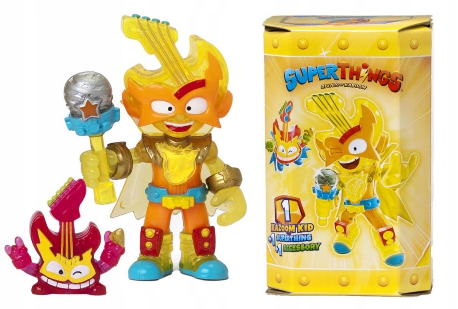 Guitarrific to wielki fan muzyki, która wypełnia każdą jego wolną chwilę – tej zapalony rockman uwielbia stawać na scenie, odgrywając ulubione melodie. Jako postać Kazoom Kid z najnowszej, 9. serii Guardians of Kazoom ma żółty kostium, mikrofon w ręku oraz charakterystyczne nakrycie głowy w kształcie gitary. Wygląd figurki został szczegółowo dopracowany, więc maluchy będą mogły podziwiać każdy szczegół jej wyglądu. Opakowanie zawiera również jedną małą figurkę Super Zings – Stringy w kształcie czerwonej gitary z szerokim uśmiechem.