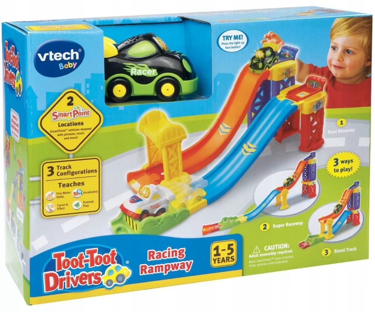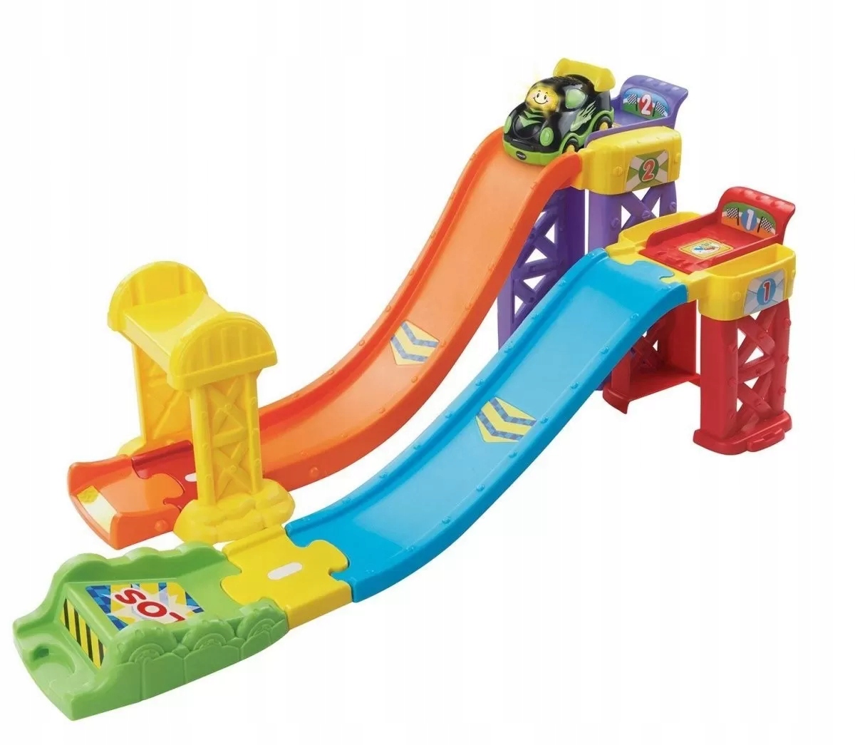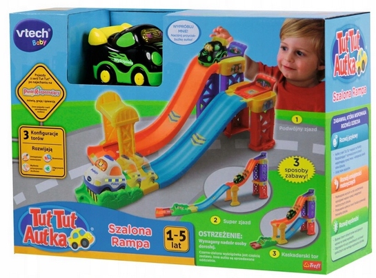 Budowa torów rozwija umiejętności manualne dziecka. W zestawie tory z 2 Punktami Rozpoznającymi pojazdy oraz autko Wyścigówka z serii Tut Tut Autka! Możliwość łączenia pojazdów i torów z innymi zestawami Tut Tut Autka.