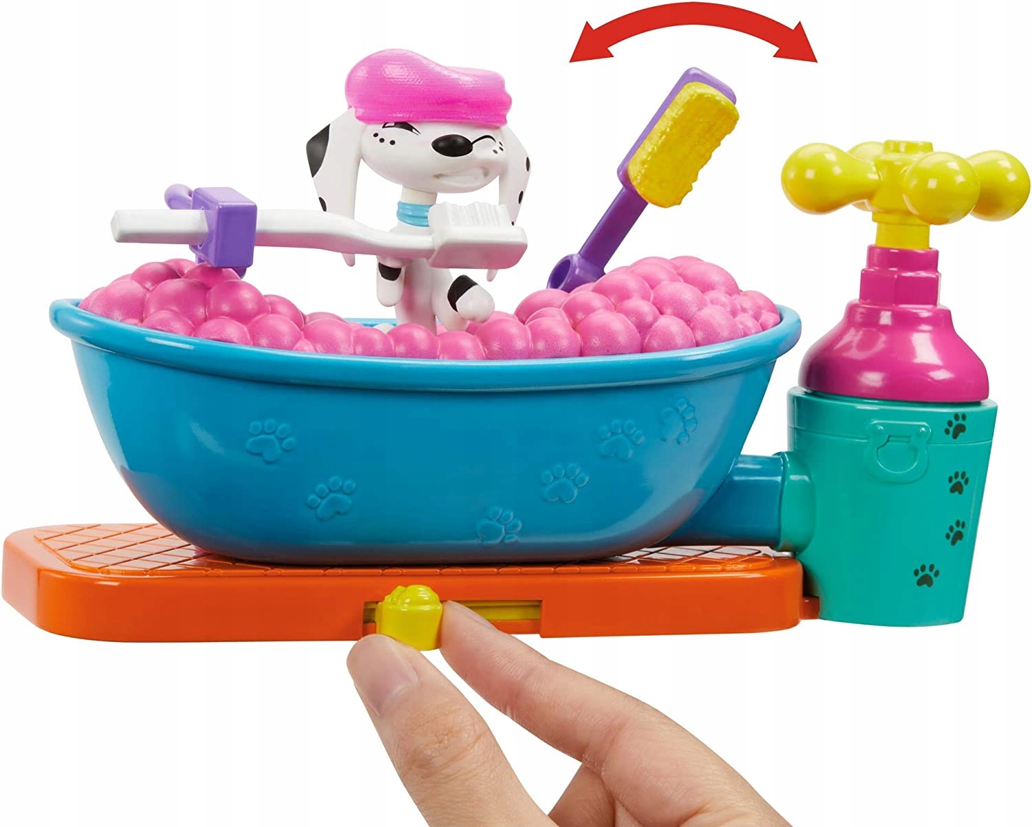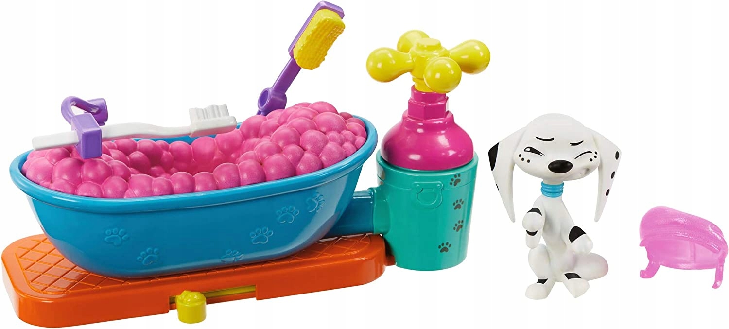 Mattel Ulica 101 Dalmatyńczyków – Zestaw do zabawy Kąpiel z bąbelkami + Figurka Dolly GBM47